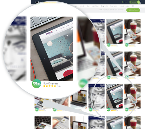 As capas do portfólio são as imagens que aparecem num resultado de busca. Elas devem ser atraentes, sem enfatizar muito um único cliente da sua empresa e evitar textos.