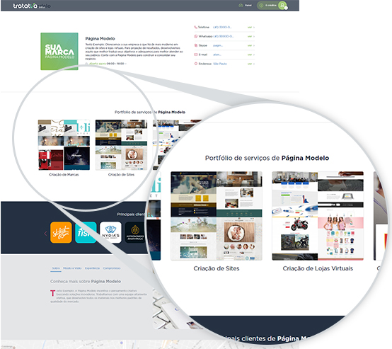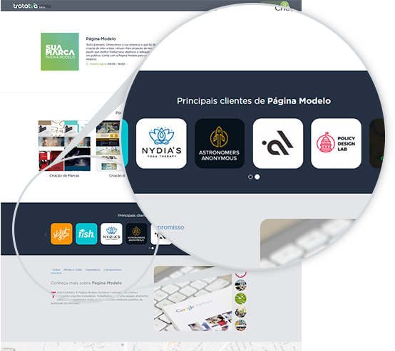 As imagens de logo do seu cliente são exibidas na sua Página de Divulgação. Elas são excelentes para transmitir mais credibilidade para sua empresa.