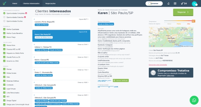 Filtro de oportunidades de negócios